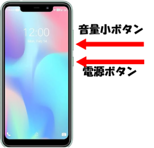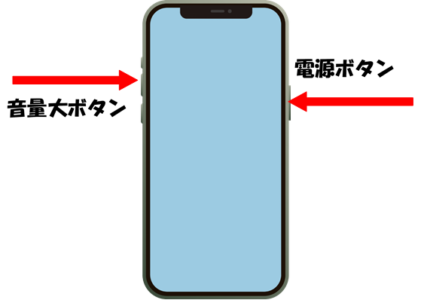 ①電源ボタンと音量を下げるボタンを同時に押します。