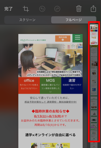 これでページを丸ごとスクショできます。何回かに分けてスクショを取らずに便利です。