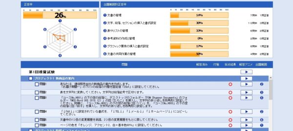 このように、試験結果は残すことができるので、自分の成長具合を確認する、苦手な項目を把握して回数を重ねていきましょう。
