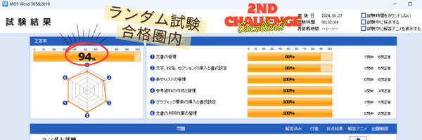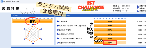 結果は合格圏内!(MOSは本試験でも70%以上で合格です)